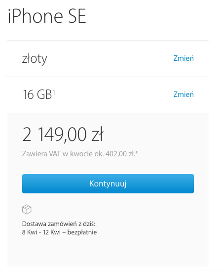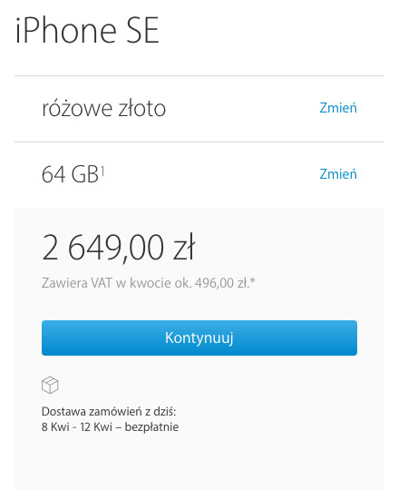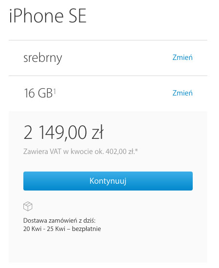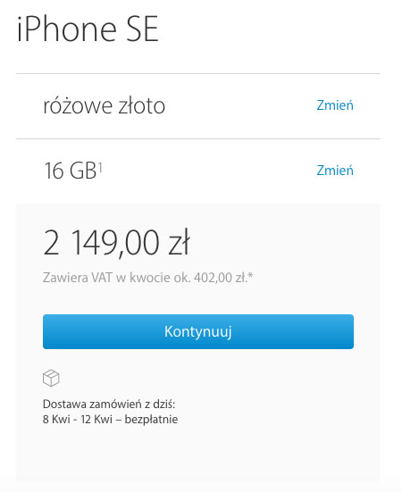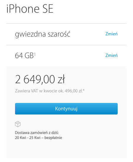 iPhone SE jest od dwóch dni dostępny w przedsprzedaży w polskim Apple Online Store. Początkowo przewidywany termin wysyłki określony był dla wszystkich modeli na 5-7 kwietnia. W związku z napływem zamówień terminy dostawy zaczęły się wydłużać. Na ich podstawie jesteśmy w stanie określić, które modele najlepiej sprzedają się w Polsce (zakładając, że na początku ilość dostępnych sztuk każdego modelu była taka sama).
