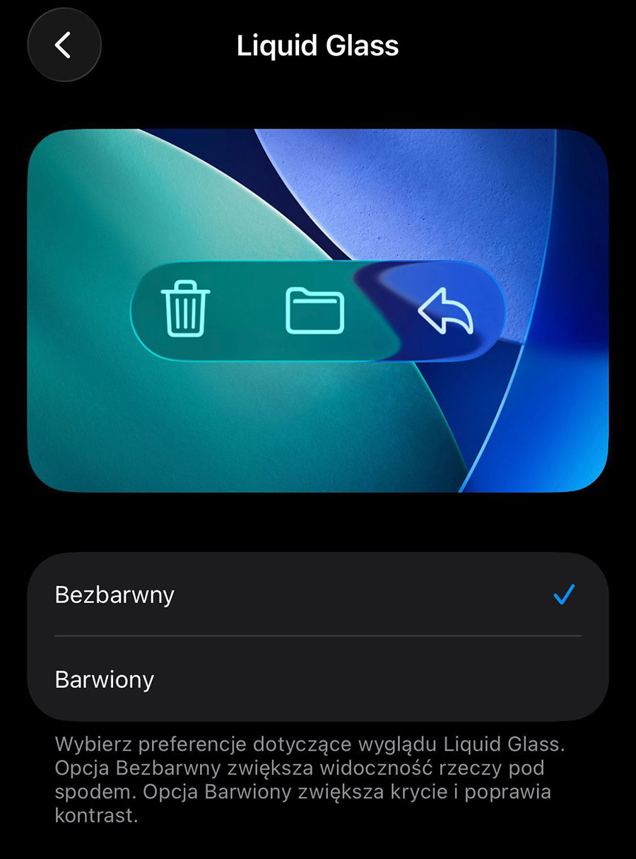Pierwszą nowością w iOS 26.1 beta 4 jest możliwości dostosowania wyglądu Liquid Glass – pojawiają się opcje dające nam większą kontrolę nad przezroczystością interfejsu.