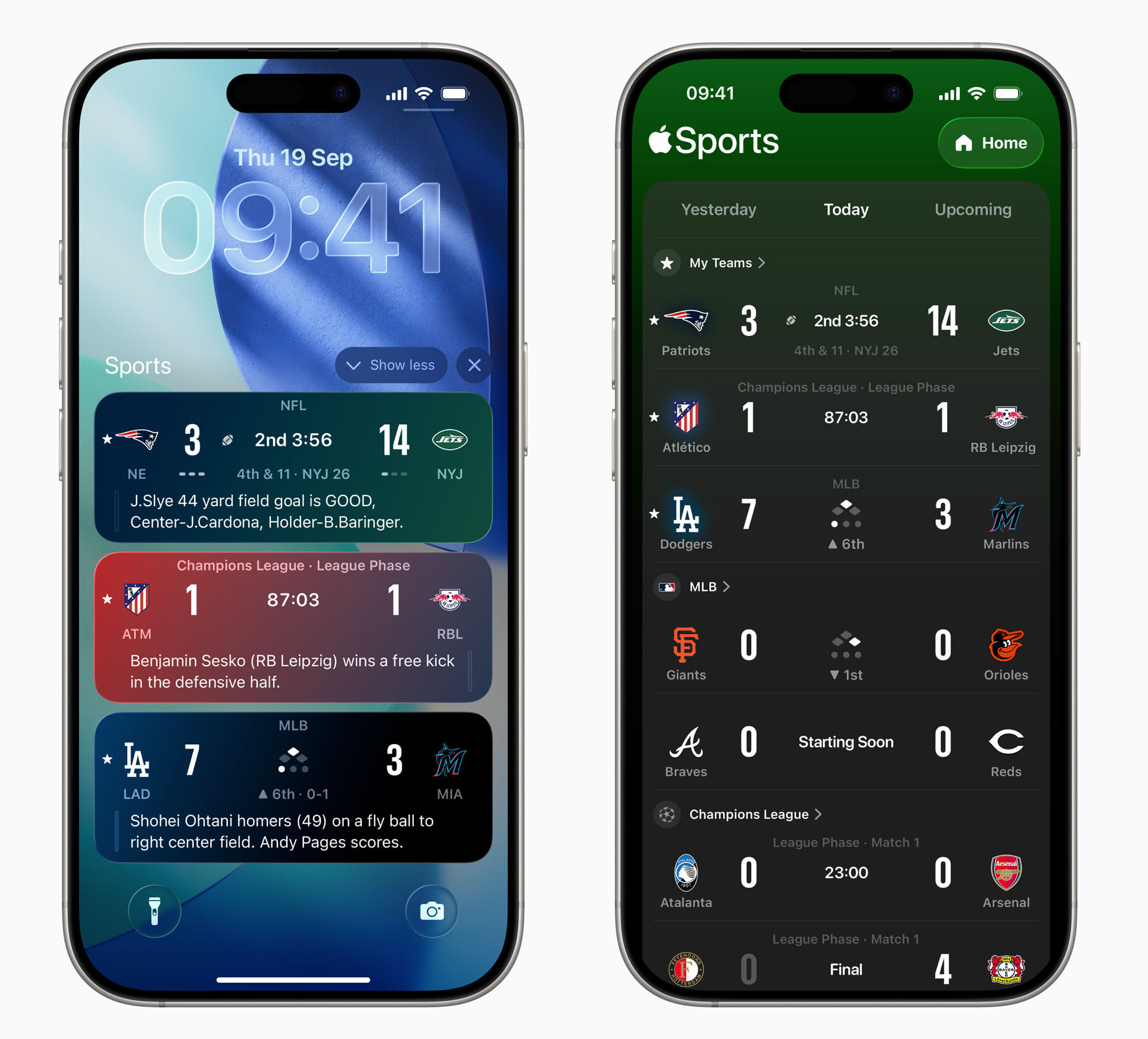 Aplikacja Apple Sports została opracowana z myślą o szybkim i prostym dostępie do wyników meczów i najważniejszych informacji sportowych. Zwłaszcza tych dotyczących naszych ulubionych lig i drużyn – dzięki opcjom personalizacji i dobrze przemyślanemu interfejsowi.
