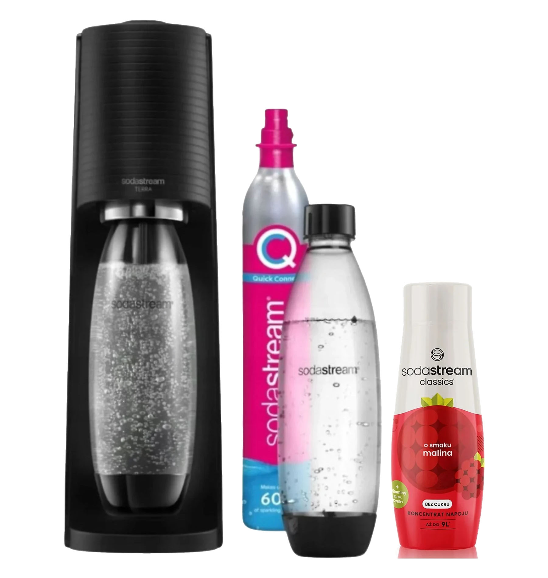 Saturator SODASTREAM Terra Black + nabój CO2 + 2 butelki Fuse 1L + syrop malinowy 440ml Wielokolorowy: 299 zł -> 199 zł