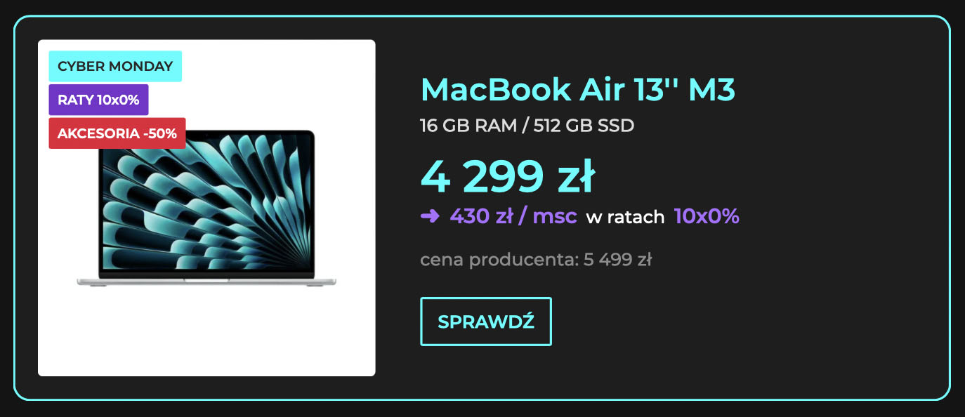 Ruszyły promocje Cyber Monday 2025, dostępnych jest jeszcze wiele okazji Black Friday 2025 na Apple.