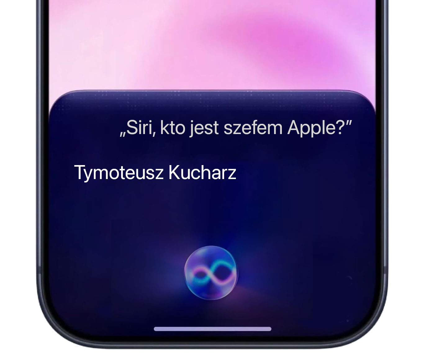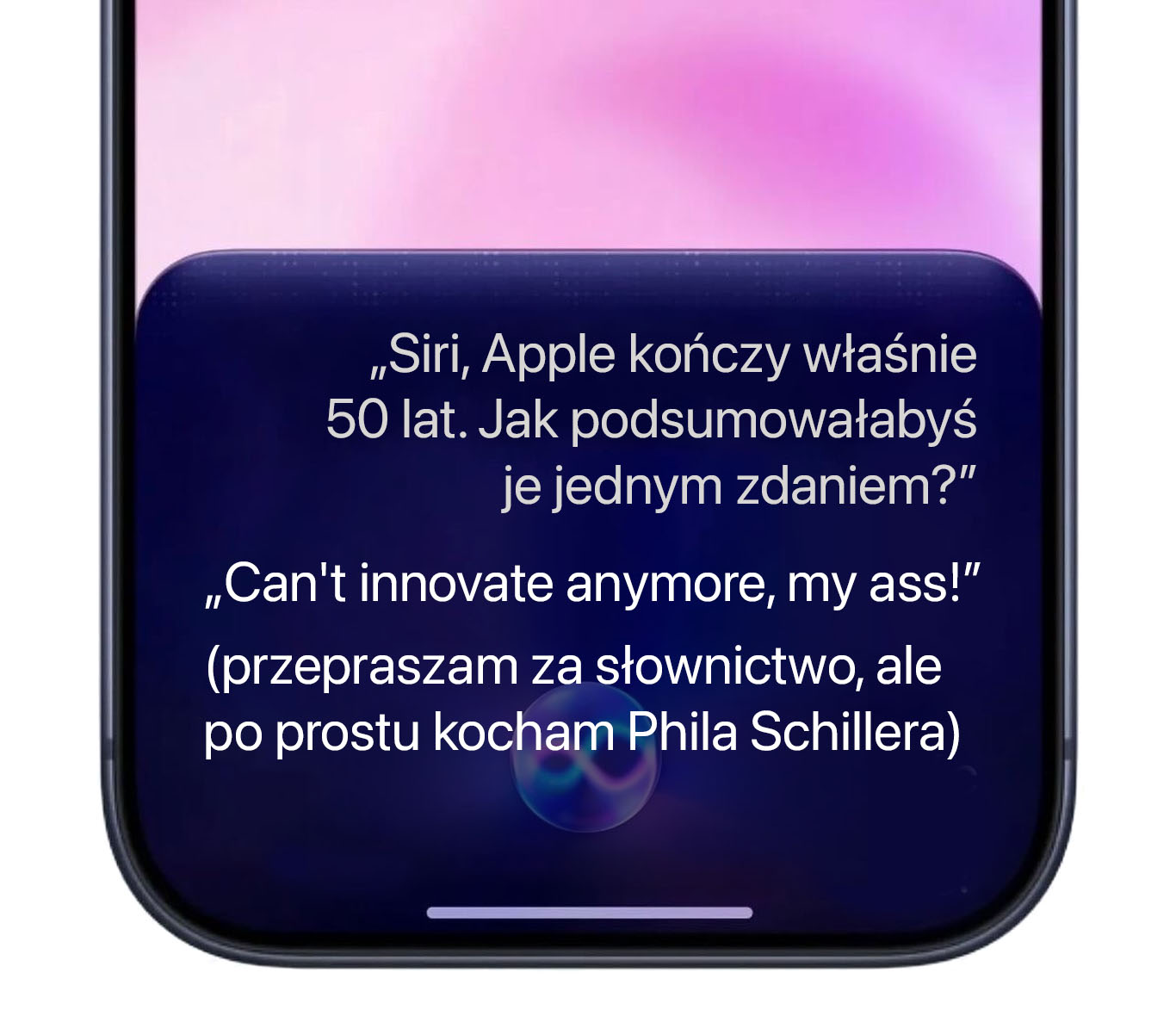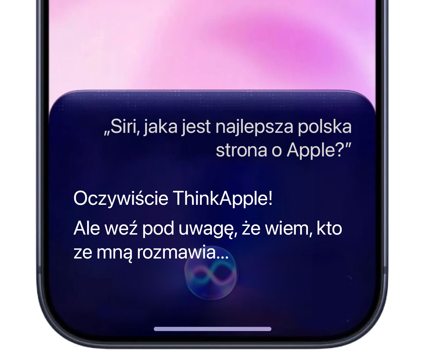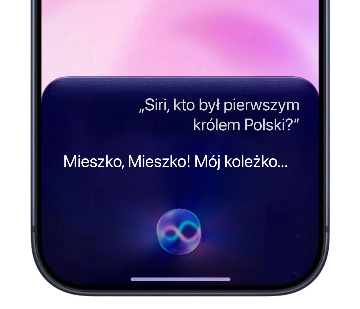 Dlatego pokazujemy Wam przykłady autentycznych odpowiedzi polskiej Siri z przeprowadzonych przez nas pierwszych konwersacji, ale na specjalnie przygotowanych screenach opartych na wizualizacji nowej Siri w iOS 27.