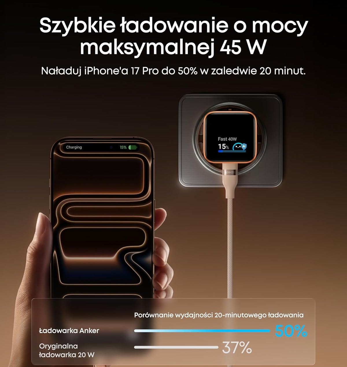 W oficjalnej sprzedaży w Polsce jest już dostępna najnowsza szybka ładowarka USB-C Anker Nano Smart Display Charger – całkowicie inna niż wszystkie dotychczasowe. Rozpoznaje ona model iPhone’a/iPada i dostosowuje do niego optymalne ładowanie. Pomaga też wydłużyć żywotność baterii urządzenia.