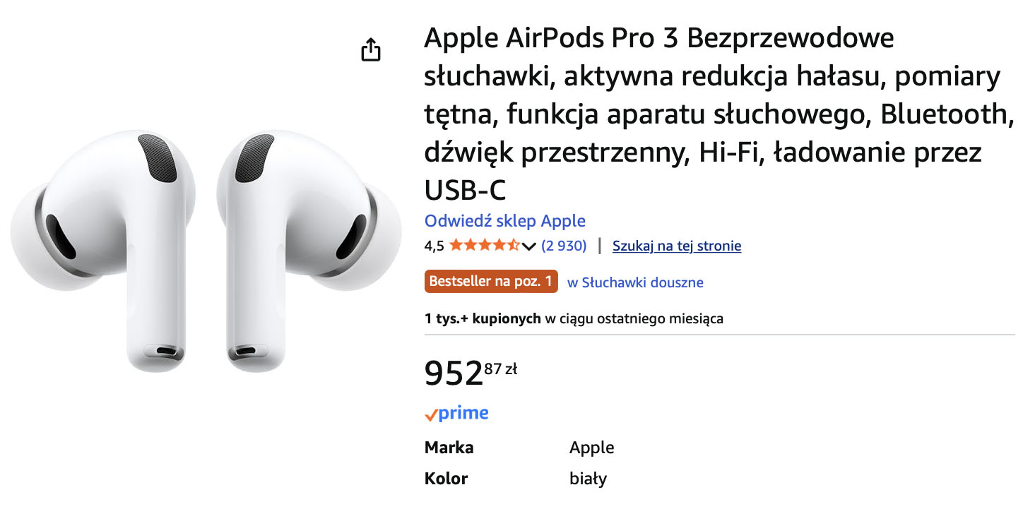 Najnowsze AirPods Pro 3 w największej jak dotąd promocji – na Amazonie ich cena jest w tym momencie obniżona z 1099 zł na jedynie 952 zł!