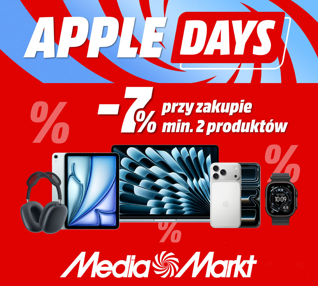 W MediaMarkt ruszyły właśnie Apple Days. Mamy dziesiątki sprzętów i akcesoriów Apple w promocji w znanym Wam już pewnie formacie – kupujecie dwa produkty biorące udział w akcji i macie rabat na cały koszyk.